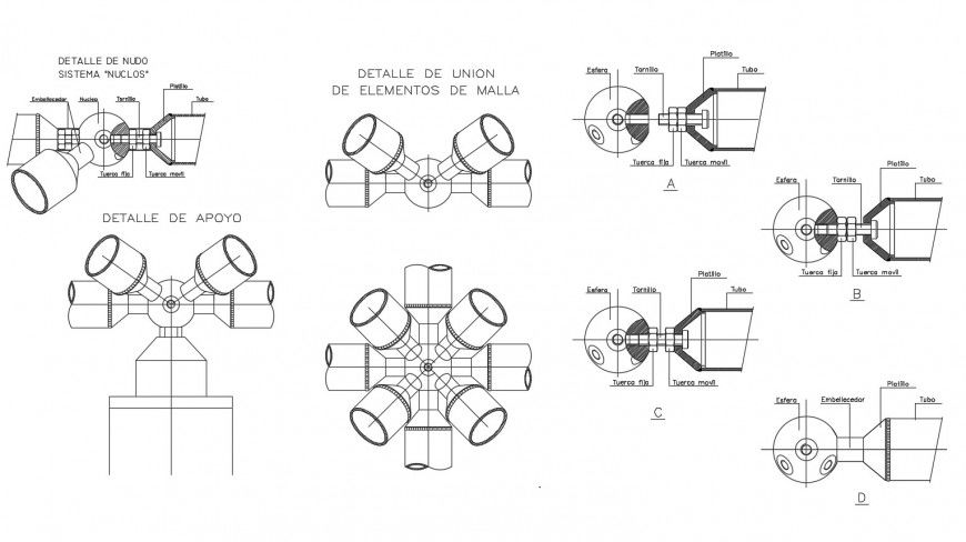 Autocad file of roof structure details which includes detail anchor to the beam, detail of union of mesh elements, assembly of the core system etc.