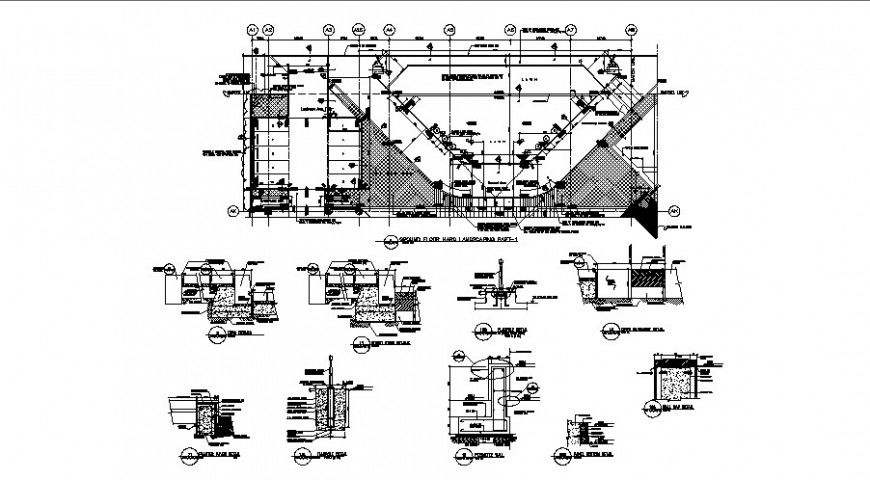 This is autocade plan it shows bridge plan that shows concrete masonry details with reinforcement details in tension and compression zone. The structure is a reinforced concrete cement (RCC) structure.