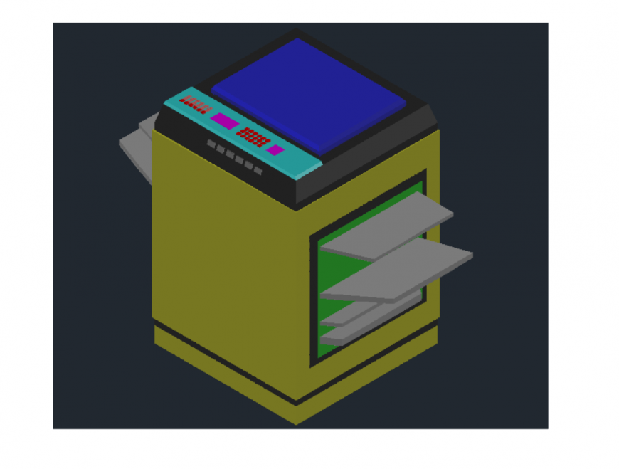 DRawing of 3d printer AutoCAD file which includes a 3d view of the printer.