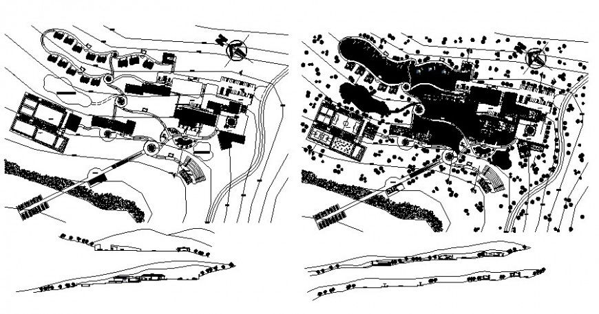 Landscaping area detail planning in autocad which includes bridge structure details with road network area and landscaping trees and plants details are also included in the drawing.