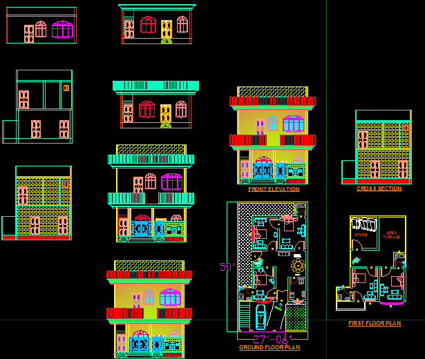 Small House Plan DWG File with Elevation and Section Design Layout