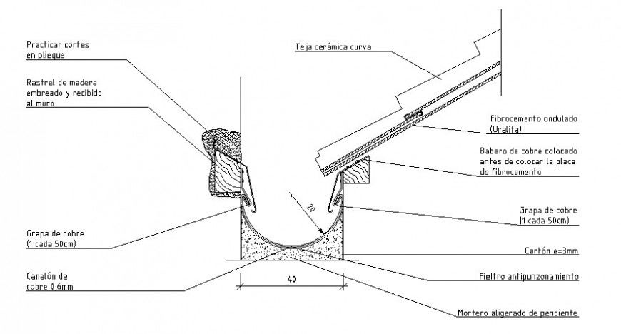 Roofing structure sectional drawing in autocad which includes principal rafter details with roofing structure parts and roofing material with naming texts details.