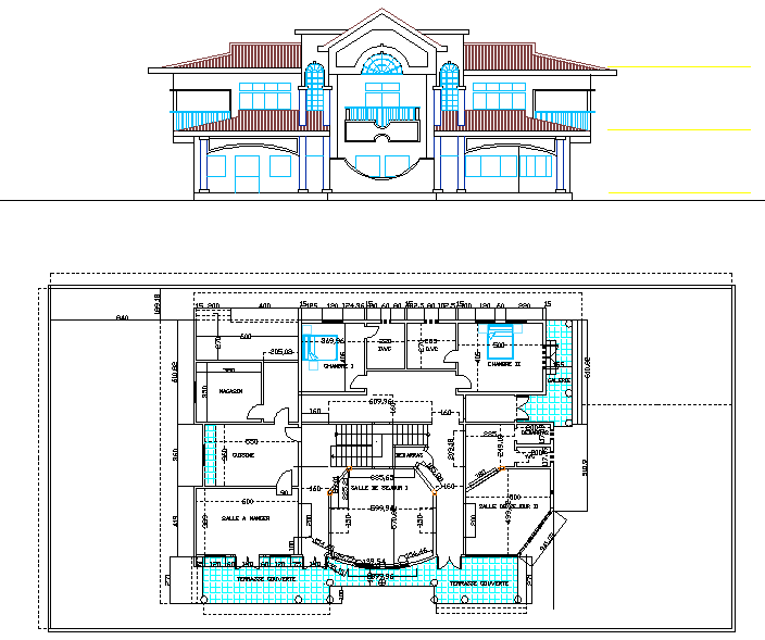 Bungalow Design DWG File. Structure detail of bungalow plan, its a modern bungalow include layout plan of ground floor plan, first floor plan, front elevation plan and side elevation plan.