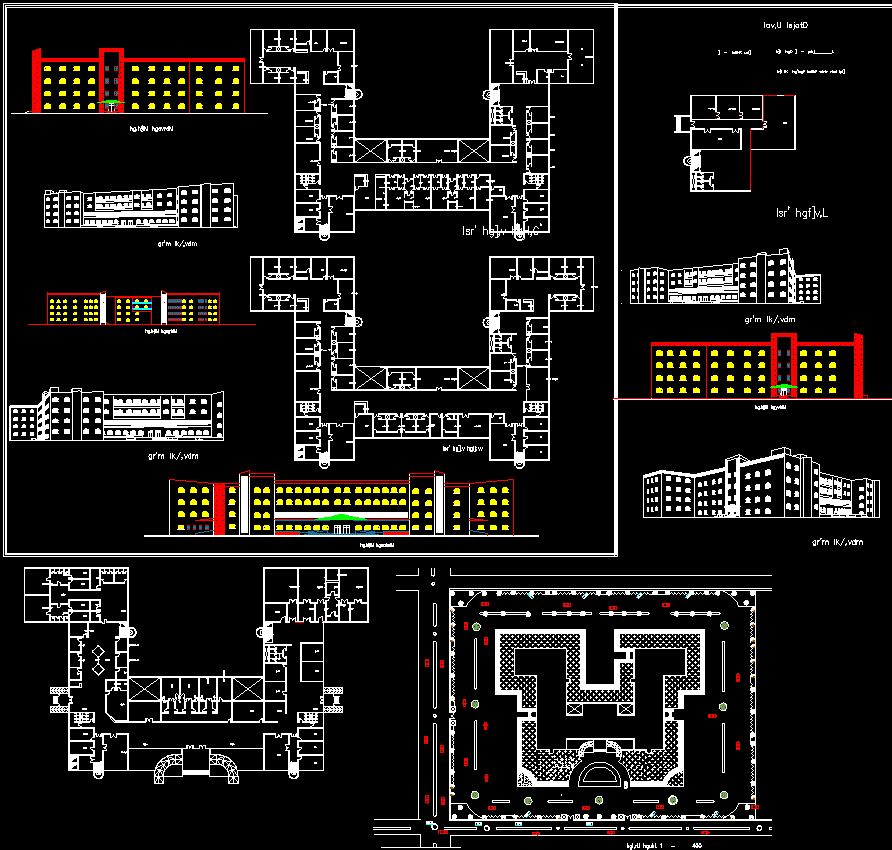 Hospital Plans and Elevation CAD File with Complete Building Layouts