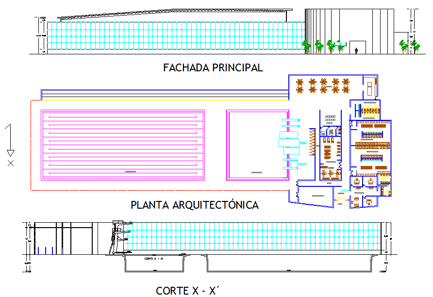 Sport centre office layout plan in DWG for architect use