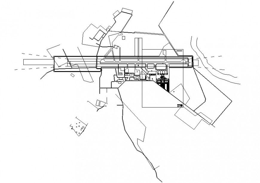 Airplane site plan of autocade design in plan with detail of area of terminal building area and design with power house and signal area and run way of airport and airport operation area operational area gate security hold and check cafe and landscape area with airplane guide with its guide.Airport