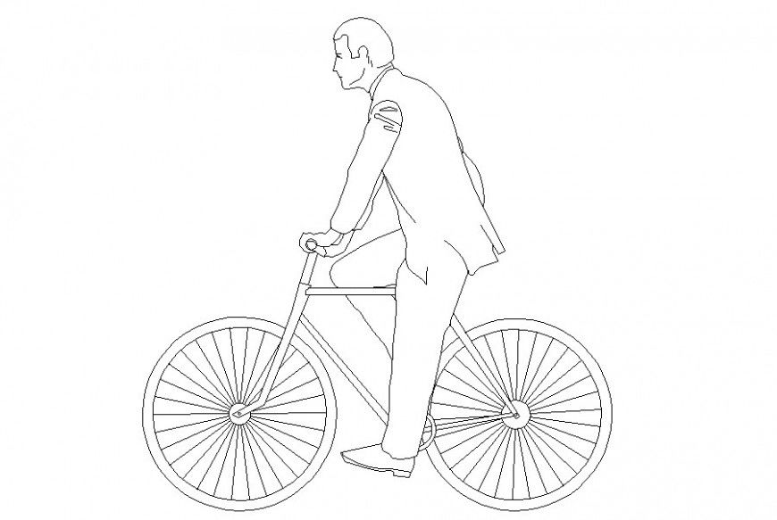Drawing of human figure AutoCAD file which includes side elevation of a human who rides on a bicycle.