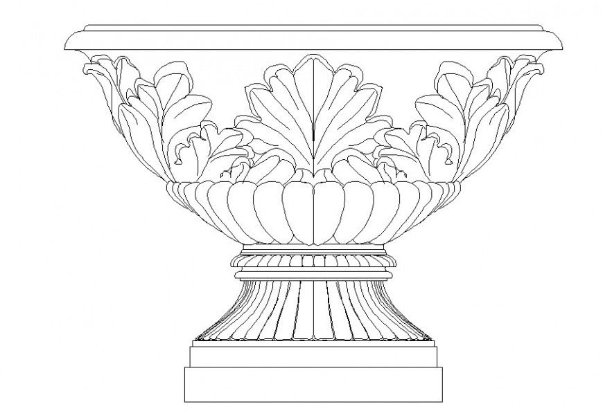 Drawing of antique vase AutoCAD block which includes elevation of the vase.