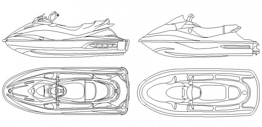 Autocad file of water bike blocks which includes plan and elavation of water bikes.