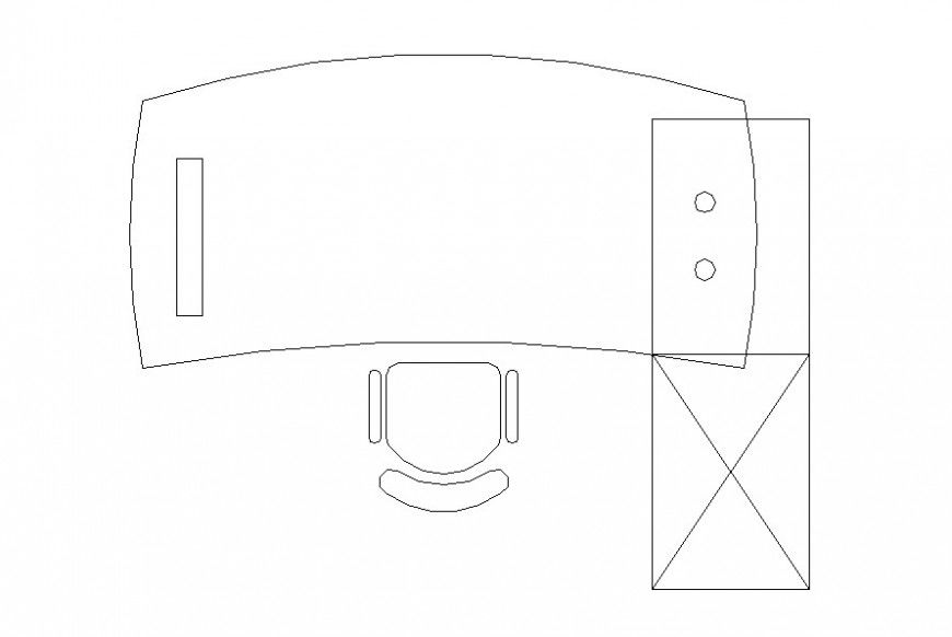 Autocad file of desk 2d block which includes bottom plan of table and chairs.