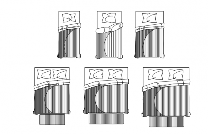 Drawing of bed 2d AutoCAD block which includes a top view of single and double beds.