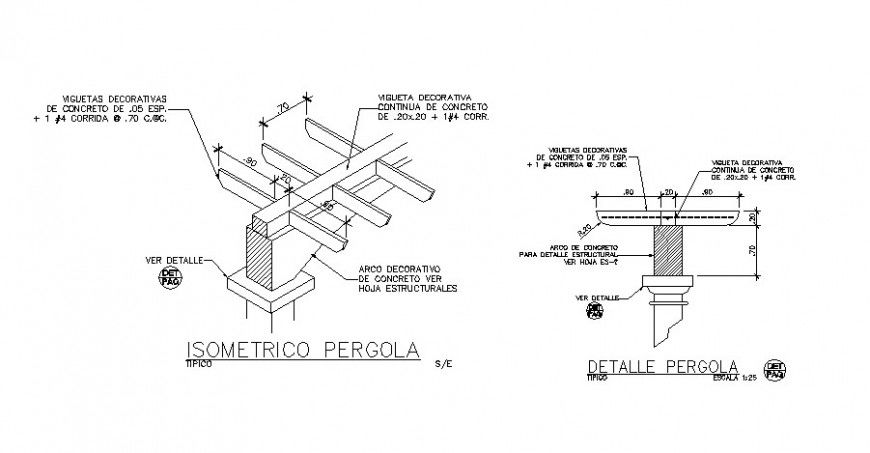 Pergola details 2d drawing in autocad