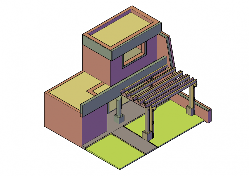 3D House Front side Elevation Detail Download file, 3D House Front side Elevation Detail in Autocad file, 3D House Front side Elevation Design Draw in autocad software.