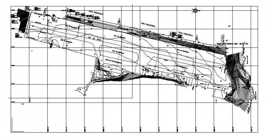 Landscaping and mapping details in autocad which includes contour lines details with area landscaping and road network details.
