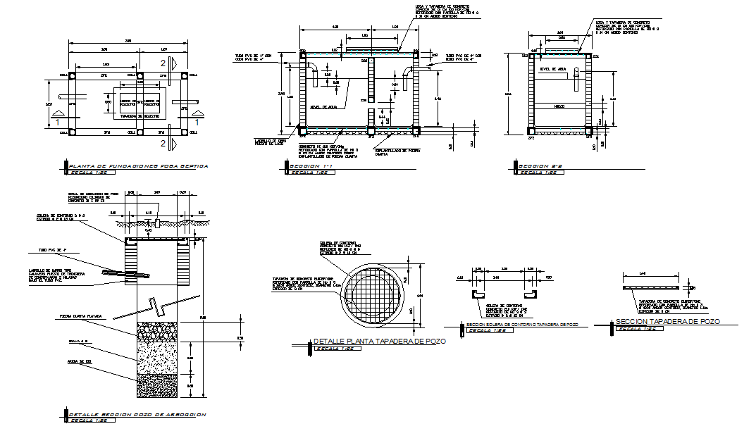 Septic Tank Design, Septic Tank Download file, Also, some septic tank designs have a second stage where the effluent from the anaerobic first stage is aerated before it drains into the seepage field.. Septic Tank DWG File, Septic Tank Detail.