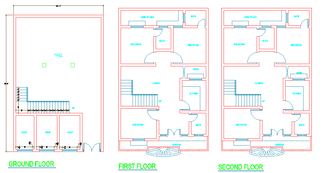 3 Floor House Design Detail, Floor plans will also indicate rooms, all the doors and windows and any built-in elements, such as plumbing fixtures and cabinets, water heaters and furnaces, etc.. 3 Floor House Design DWG File, 3 Floor House Design Download file.
