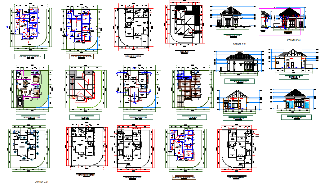House Design Download file, modern house elevation, interior of modern single house, interior of ground floor and first floor. House Design Design, House Design DWG File.