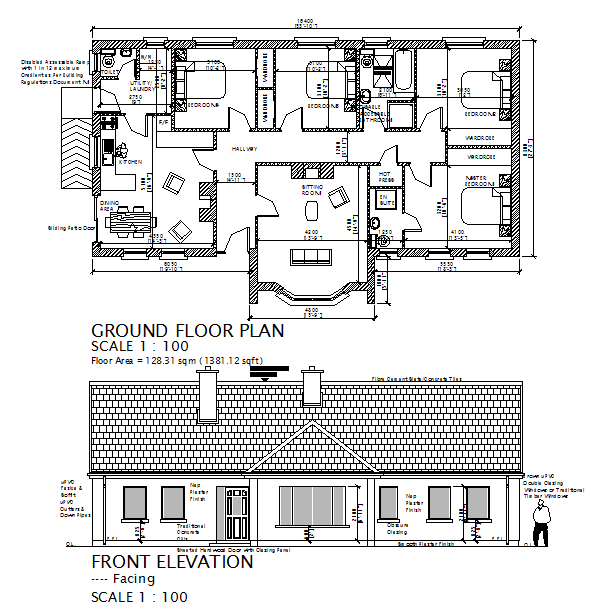 House Design, Bungalows are very convenient for the home owner in that all living areas are on a single-story and there are no stairs between living areas. House DWG file, House Detail.
