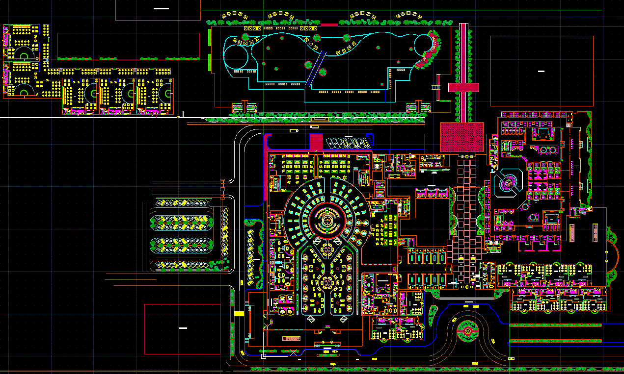 Explore this resort AutoCAD file featuring 2D architectural design drawings ideal for luxury resort planning, layout detailing, & professional DWG CAD drafting.