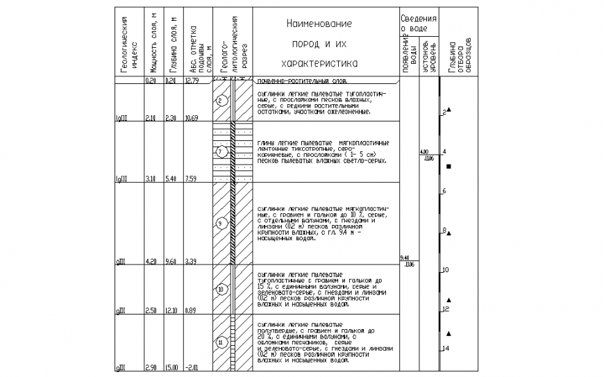 Wall Section Detail in DWG file, light clay silty soft plastic thixotropic tape, gray-brown, with interlayers (1–5 cm) sand dust soft moist light gray.
