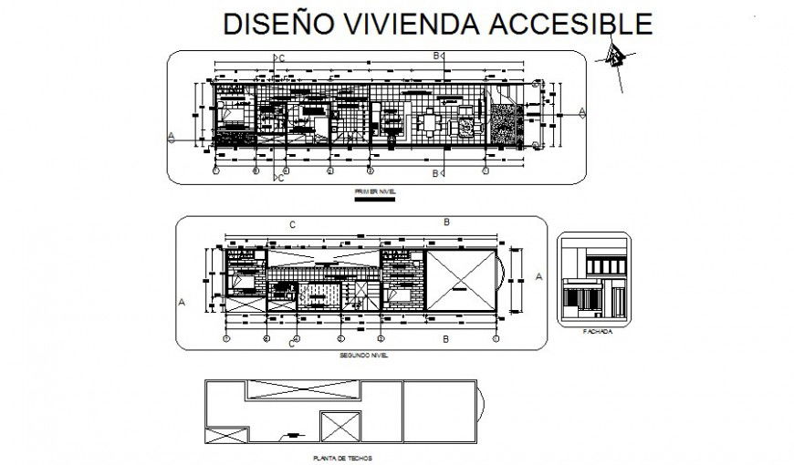 House plan and elevation in autocad which includes a working plan of the housing unit. Furniture details are also provided in an apartment and the building is of two stories. Different room details are also provided like drawing room area bedroom area and many other details.