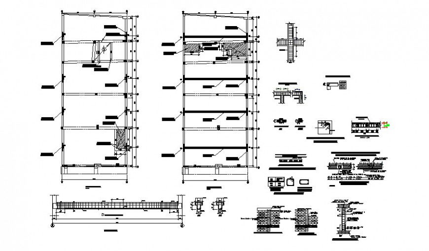 Construction units block details in autocad which includes column and beam structure details footing foundation details are also provided. Reinforcement details are provided in tension and compression zone and the structure is RCC structure.