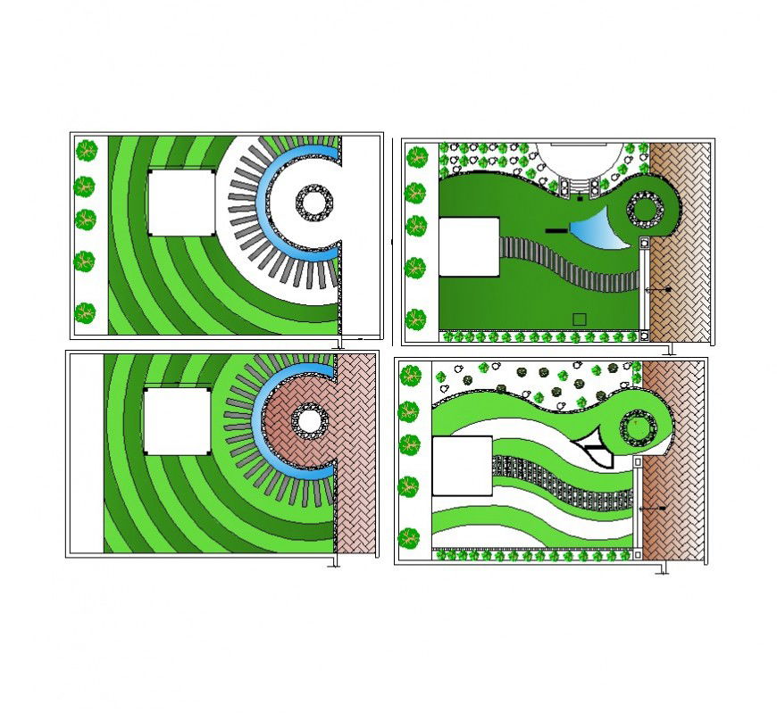 Detail garden area drawing in autocad which includes landscaping trees and plants with footpath details.