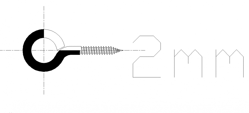 2 MM Dimension Screw detail, Front side view screw Detail in Autocad drawing.