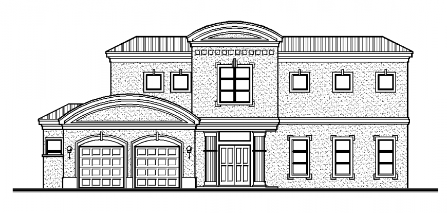 Modern Villa Elevation Design DWG file, This elevation front view Show drawing Autocad Software.
