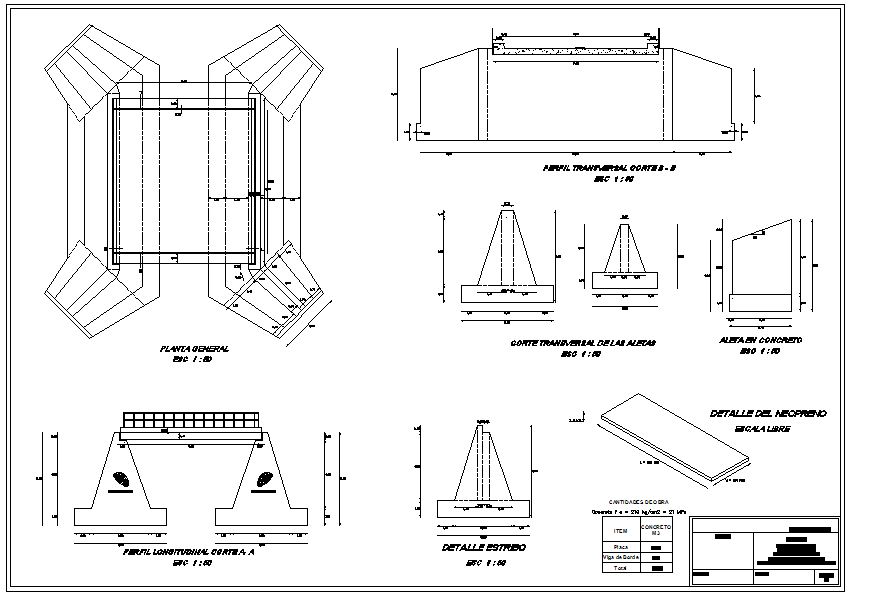 Structure Bridge Detail Download File. Bridge project in this autocad file include concrete bridge design, plan, elevation and details about levels heights.