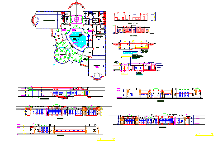 Club house Project design, Club house dwg autocad files include all side elevations, sections, working plan, electric detail, structure detail and huge data of club house architecture detail. . Club house Project download file, Club house Project DWG File.