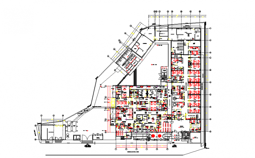 Hospital drawing in lay-out design, circulacion gris, labor de parto, ultrasonido, laboratorio etc detail in autocad detail.