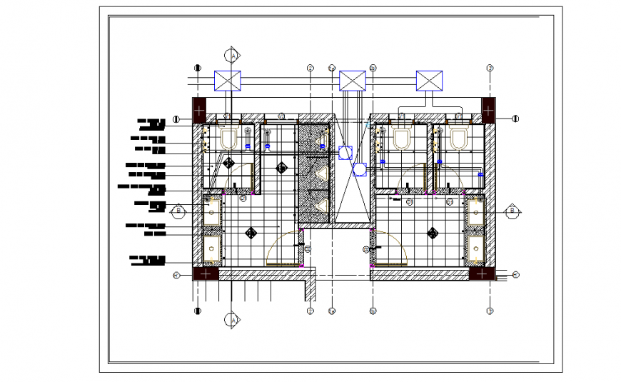 Public Toilet Plan Lay-out design, flora made pillar cock for washbasin, grifine made 300x300 satin, urinals with attached sensers solo made detail.