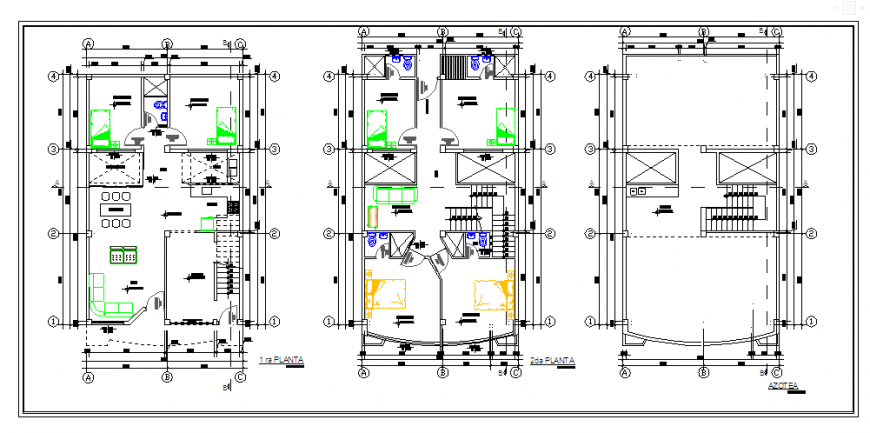 Here the Proposed one family home design drawing with ground floor design drawing, first floor design drawing, working layout plan design drawing, terrace floor design drawing, center line design drawing, furniture layout design drawing in this auto cad file.