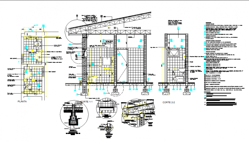 Structure Construction Detail in Autocad File, mosaico granitic floor 30x30cm, countercase ho. poor esp.12cm, joint with concrete, carpinteria metálica