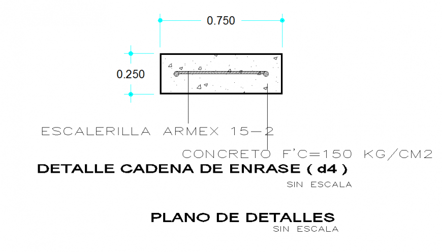 String chain detail in DWG File, concrete f'c = 150 kg / cm2 ladder armex 15-2, etc detail.