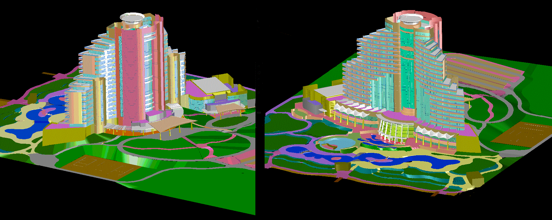 3D Hilton Hotels and Resorts AutoCAD drawing with full layout plan