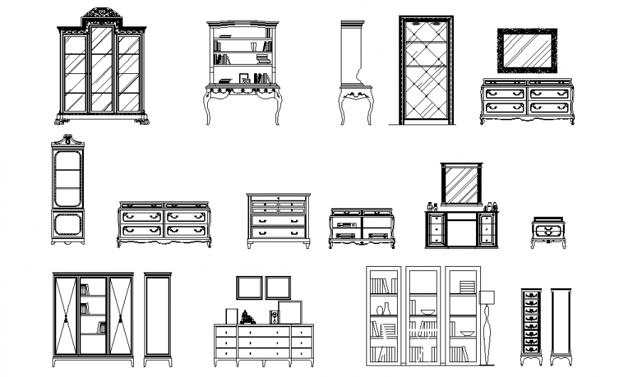 House Furniture Elevation Design Block, All Furniture like T.V Unit, ward robe, Table, Chair & Drfessing Table, Crockery unit etc.