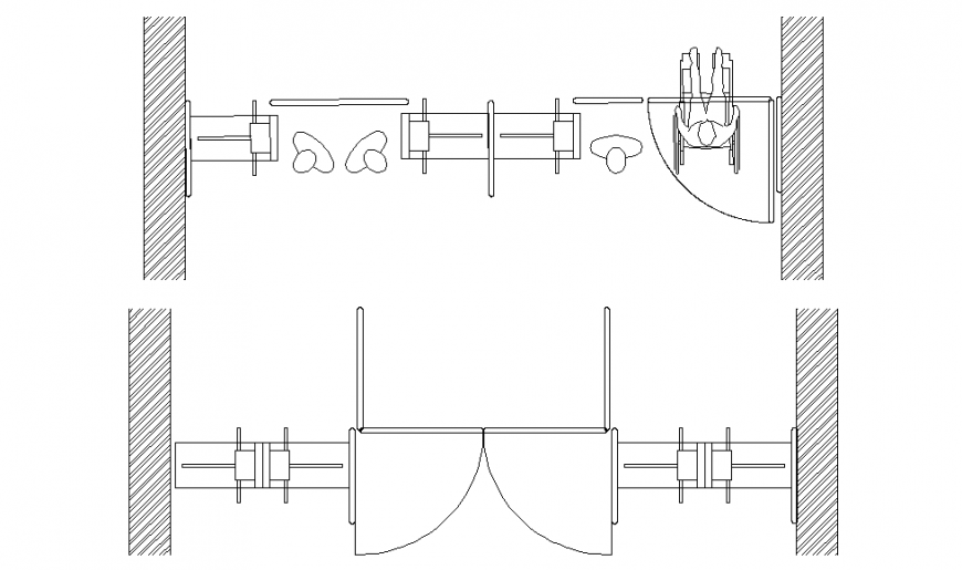 Main Entry Counter Design Block Detail, Main Entry Open Door Plan Detail & Section cutting plan Detail & Side Cutting Wall Drawing detail.