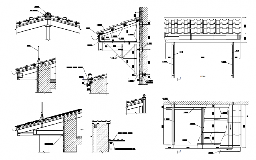 Detail of Steel Roof section Design, corner roof tiles, waterproof polyethylene film, roof tiles braas, air element,etc detail in DWG File.