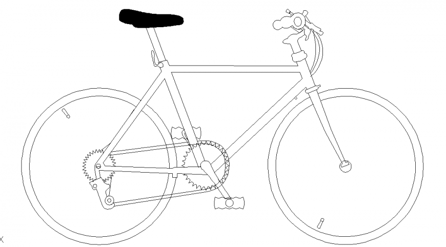 Bicycle Front View show design Block, This Bicycle Block Design Draw in autocad Software, Front side elevation detail.