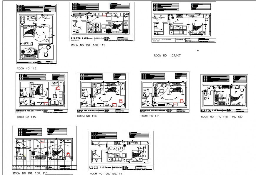 Electrical hotel room plan autocad file, top elevation detail, electrical wire detil, ceiling detail in light and fan detail, brick wall detail, furniture detail in door, window, table and chair detail, table specification detail, hatching detail, not to scale detail, etc.