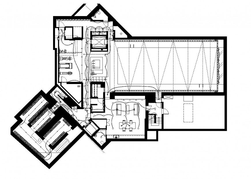 Electrical small office plan autocad file, hidden lien detail, thickness detail, brick wall detail, flooring detail, furniture detail in door and window detail, stair detail, top elevation detail, not to scale detail, electrical wire detail, etc.
