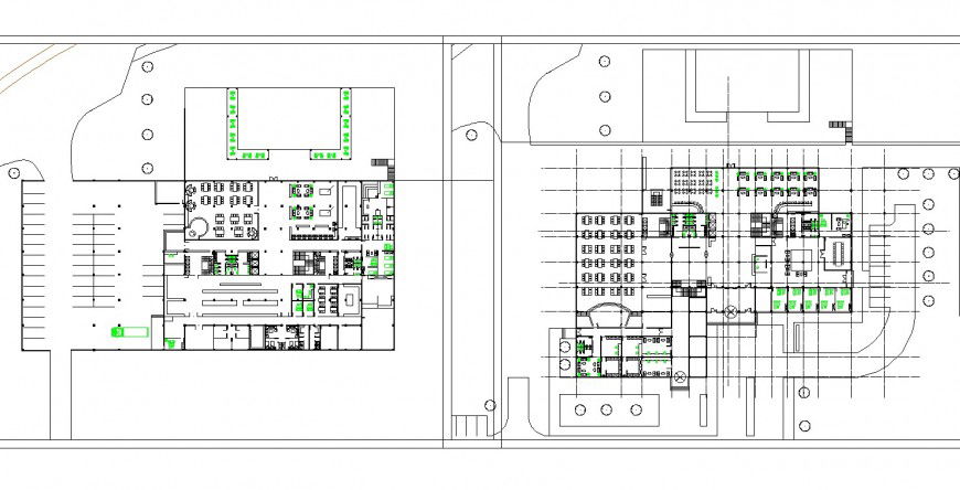 Hotel planning layout file, top elevation detail, grid line detail, landscaping detail in tree and plant detail, furniture detail in door, widow, table and chair detail, brick wall detail, flooring detail, stair detail, not to scale detail, etc.