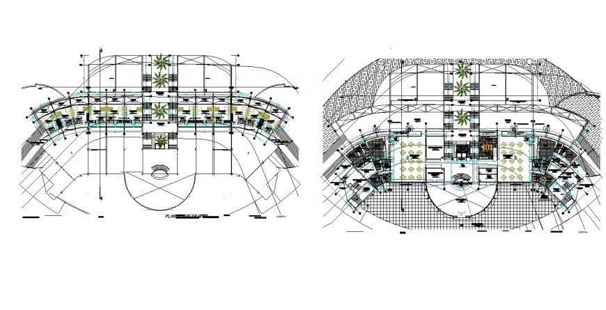 Proposed club house plan layout file, section line detail, centre line plan detail, dimension detail, naming detail, landscaping detail in tree and plant detail, steel framing detail, top elevation detail, cut out detail, not to scale detail, etc.