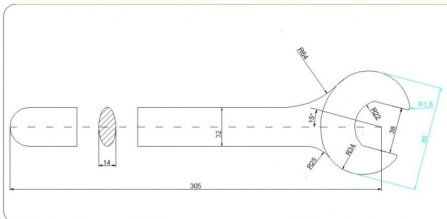 Nut section plan layout file, dimension detail, naming detail, hidden lien detail, not to scale detail, top elevation detail, arc shape detail, etc.