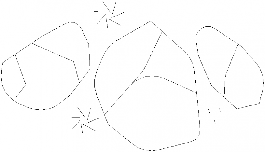 Rocks autocad dwg file, curve design detail, top elevation detail, line plan detail, not to scale detail, hatching line detail, etc