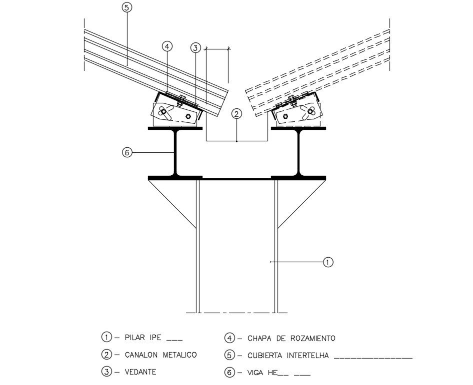 Sectional design of roof which shows roof truss design details along with angle section details, joints and connections details, and other roofing components details.