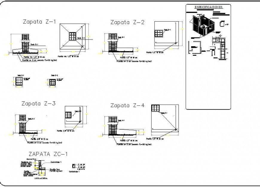 Foundation plan and section autocad file, dimension detail, naming detail, cut out detail, reinforcement detail, stirrups detail, bending wire detail, column section detail, hatching detail, isometric beam section detail, etc.
