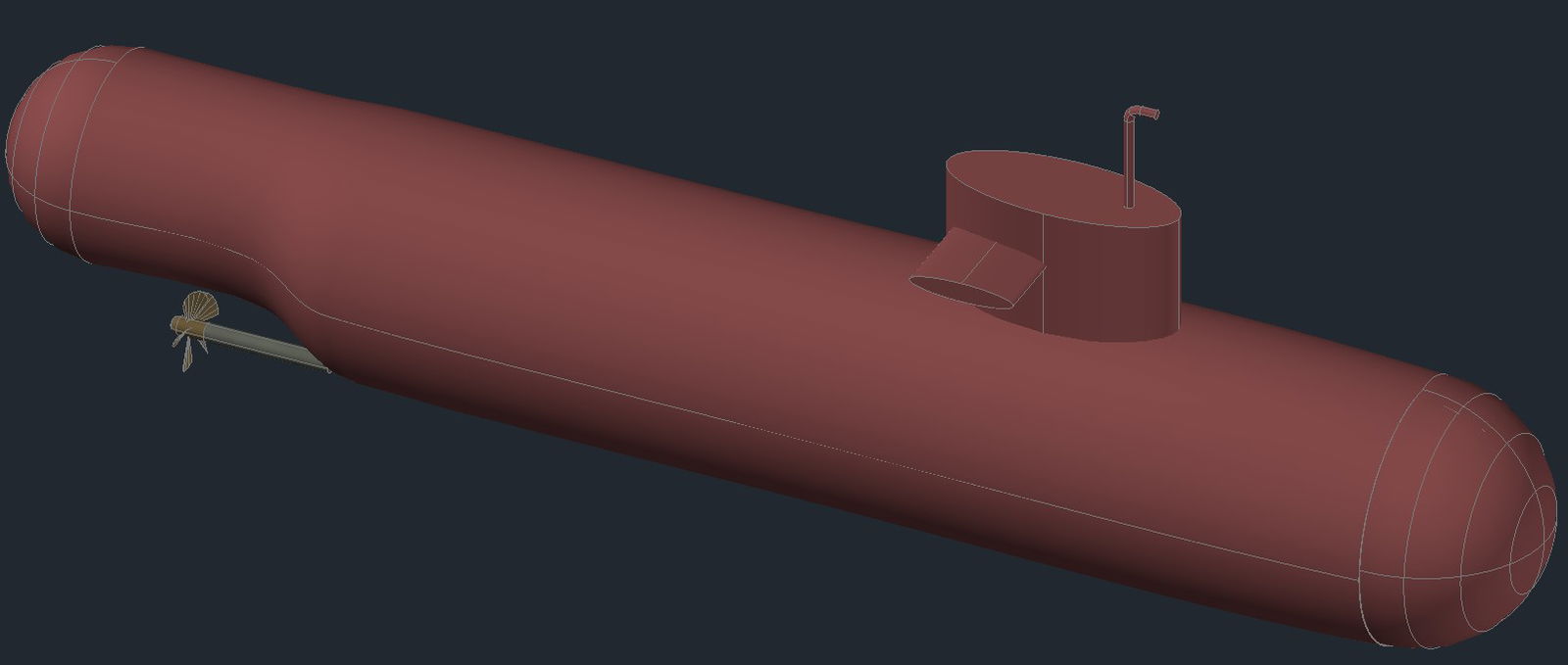 Download 3d model drawing of water submarine which shows an isometric view of submarine